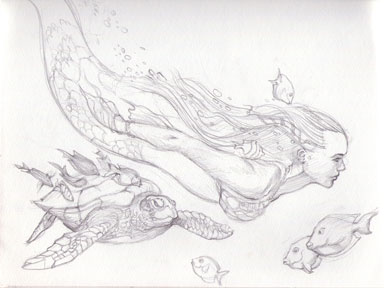 ![]() "Tell me your Secrets" This sketch became the Mystical Mermaid Sign for the store Of that same name in Islamorada, Florida. See the Mermaid Visions Gallery Page on this site for the finished image |